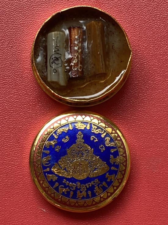 เนื้อ โลหะชุบทองลงยาสีน้ำเงิน ขอบสีแดง ขนาด3.2ซม