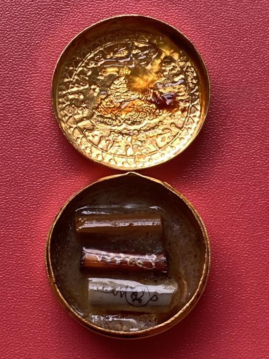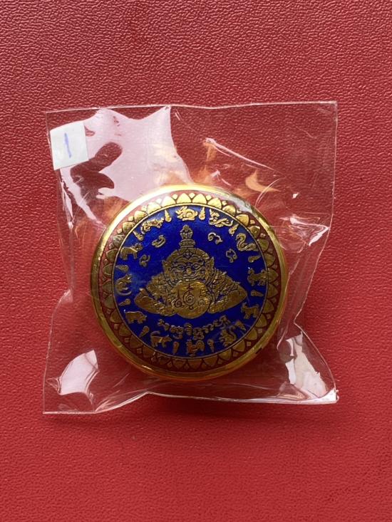 เคาะเดียวแดง สีผึ้งพระราหู รุ่น มงคลจักรวาล เนื้อ โลหะชุบทองลงยาสีน้ำเงิน ขอบสีแดง ขนาด3.2ซม