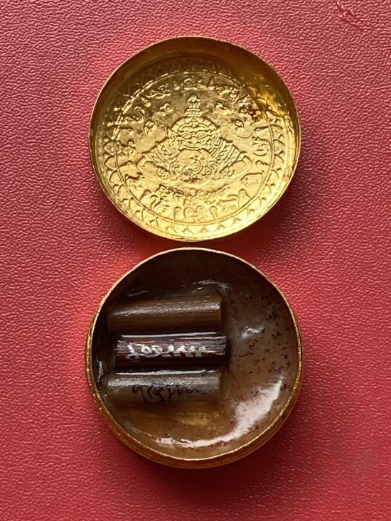 เคาะเดียวแดง สีผึ้งพระราหู รุ่น มงคลจักรวาล เนื้อ โลหะชุบทองลงยาสีน้ำเงิน ขอบสีแดง ขนาด3.2ซม