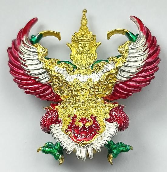 (เลขเดี่ยวสวย เบอร์ 6) พญาครุฑ รุ่น เศรษฐีเงินไหลมา วัดพระมหาธาตุวรมหาวิหาร เนื้อตริยโลหะ ชุบ2กษัตริย์ ลงยาราชาวดี เบอร์ 6 พร้อมกล่องเดิมครับ