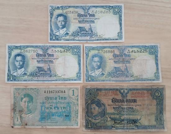 ธนบัตร 1 บาท รวม 5 ฉบับ