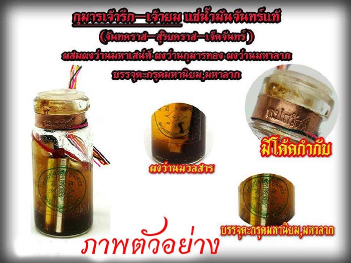 มวลสาร....กุมารเจ้ารัก-เจ้ายม แกะจากไม้รักตายพรายและไม้มะยมตายพราย เอากิ่งที่ชี้ไปทางทิศตะวันออกเท่านั้นทำพิธีพลีกรรมขมาบอกกล่าว ขอนุญาติสิ่งศักดิ์สิทธิ์ รุกขเทวดาที่สถิตในต้นไม้นั้ บอกเจตนาว่าจะนำไปทำสิ่งใด จากนั้นนำไม้ทั้งสองชนิดมาแกะเป็นรูปกุมารน้อยน่ารัก แช่น้ำมันจันทร์แท้ ผสมน้ำมันจันทคราส(อ.เปล่ง) น้ำมันสุริยคราส(ลป.สวัสดิ์) น้ำมันเจ็ดจันทร์(ลป.ลัด) หุงเคี่ยวรวมกับว่านมหาเสน่ห์ทั้ง 12ชนิด ว่านกุมารทอง ว่านมหาลาภทั้ง 9ชนิด บรรจุตะกรุดมหานิยม ตะกรุดมหาลาภ ผูกมัดด้วยเชือกพิธีคาถาพัน..