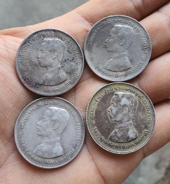 เหรียญบาทหนึ่ง รัชกาลที่ 5 (เนื้อเงิน)จำนวน4เหรียญ