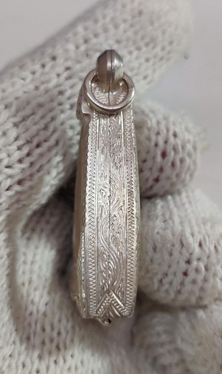 ตลับเงินแท้ แกะลาย ใสนางพญา หรือ ใกล้เคียง ขนาดประมาณ สูง 3.2 ซม.กว้าง 1.5 ซม.น้ำหนัก 13.42 กรัม ไม่เคยใช้ สภาพ สวย สมบูรณ์
