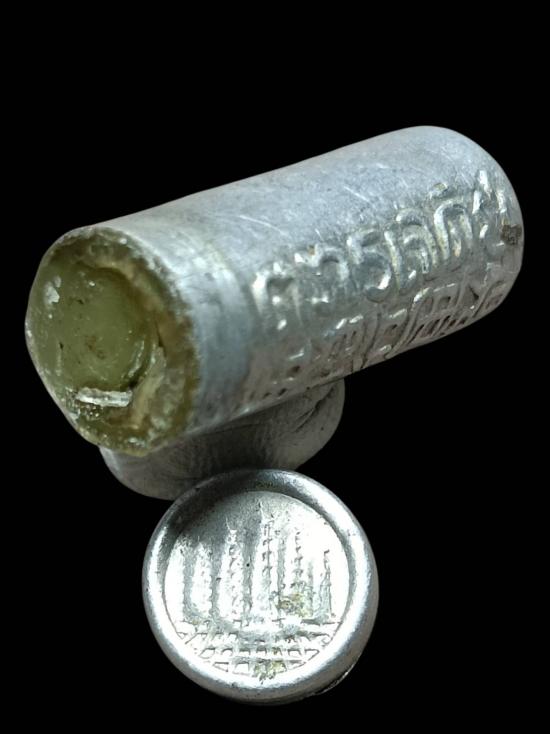 สีผึ้งในหลอดปีเนียมตราเจดีย์ ไม่ทราบที่คับฝาปิดอยู่ครบคับ |