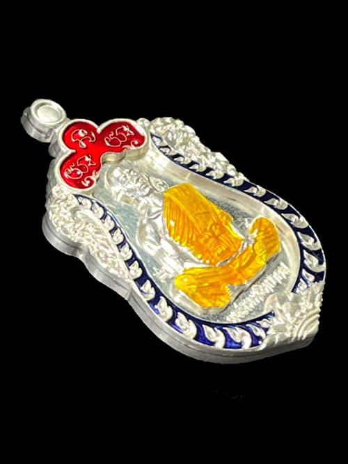 ''วัดใจ'' เหรียญเสมา รุ่นเจริญพรไตรมาส หลวงพ่อคูณ ปริสุทโธ วัดบ้านไร่ 2557 เนื้อเงินปะฉลุ 3 ชิ้น ลงยา 3 สี พื้นเงิน ขอบเงิน องค์เงิน หมายเลข 4