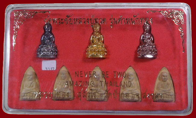 แดงที่เคาะแรก !!! พระชุด 8 องค์ (ฝังแผ่นโค๊ตเงิน+หมายเลข) รุ่นตำหนักทอง หลวงปู่ทวด หลวงพ่อทอง วัดป่ากอ จ.สงขลา ปี2540 กล่องเดิม