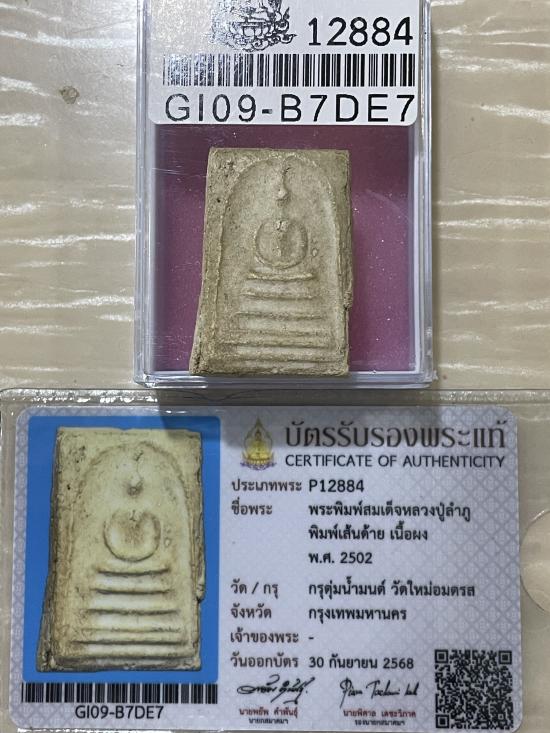 (เคาะแดง3900) +บัตรสมาคม สมเด็จเส้นด้ายใหญ่ หลวงปู่ลำภู ลงกรุตุ่มน้ำมนต์ |