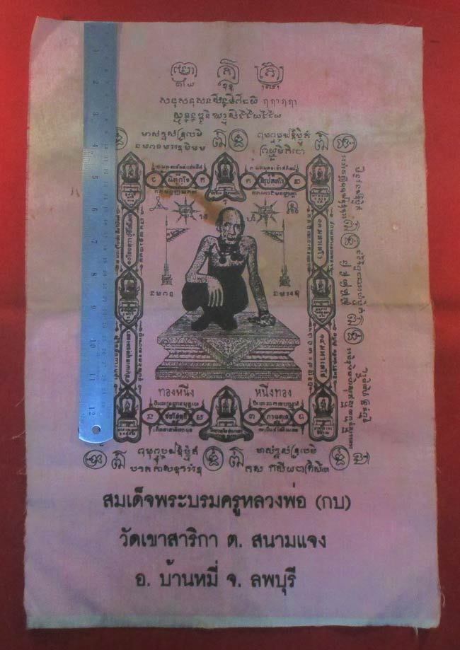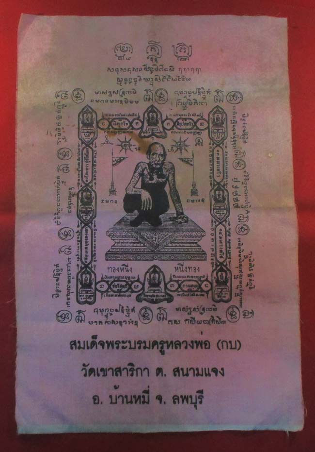 ผ้ายันต์ สมเด็จพระบรมครูหลวงพ่อ (กบ) วัดเขาสาริกา ต.สนามแจง อ.บ้านหมี่ จ.ลพบุรี ครับ (พระบ้าน ครับ) |