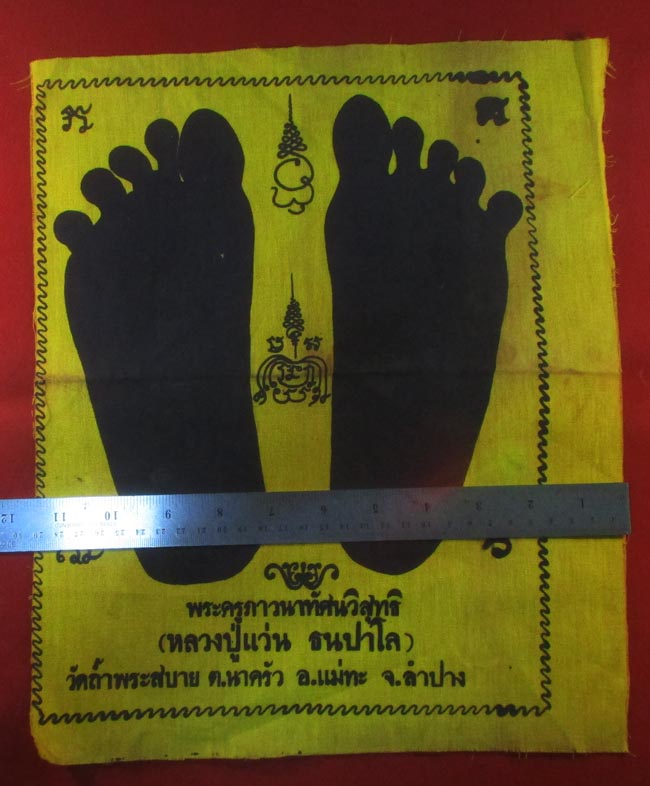 ผ้ายันต์ รอยท้าว หลวงปู่แว่น ธนปาโล วัดถ้ำพระสบาย ต.นาครัว อ.แม่ทะ จ.ลำปาง ครับ (พระบ้าน ครับ) |