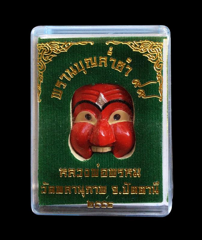 +!!เคาะเดียวllดง ตลอดสาย!!+ หน้ากากพรานบุญ รุ่น ล่ำซำ99 พ่อท่านพรหมวัดพลานุภาพ จ.ปัตตานี ปี2558 เนื้อทองแดงลงยา (หน้าแดง) พิมพ์ใหญ่ หลังอุดมวลสาร ฝังตะกรุด+จีวร+เกษา ตอกโค้ดและเลขตามรูป พร้อมกล่องครับ |