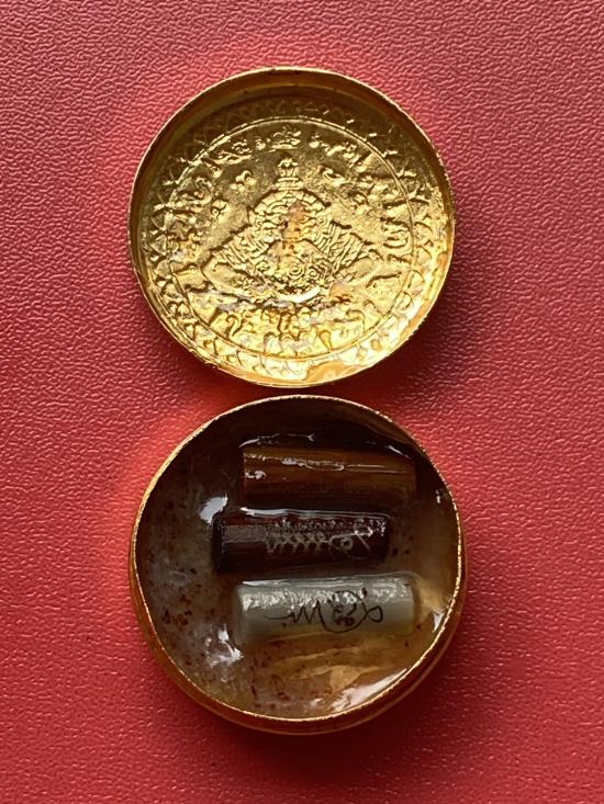 เคาะเดียวแดง สีผึ้งพระราหู รุ่น มงคลจักรวาล เนื้อ โลหะชุบทองลงยาสีน้ำเงิน ขอบสีแดง ขนาด3.2ซม |