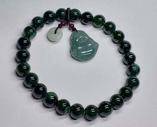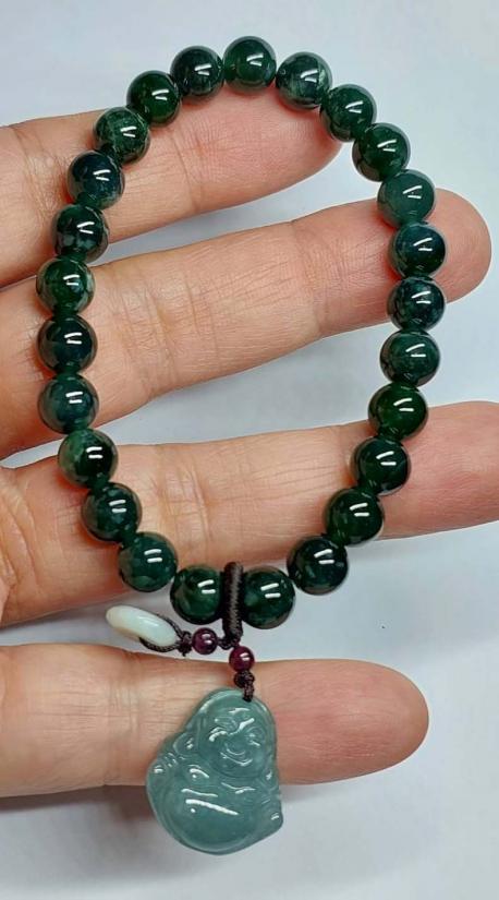 ***วัดใจ***สร้อยข้อมือ หยกจักรพรรดิ์ พร้อมจี้ เม็ด 8 มิล สวยๆ |