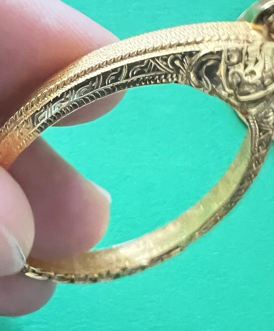 (กรอบมือ2 ทองคำแท้) เหรียญรูปไข่ น้ำหนักทอง 3.1 กรัม ทอง 58% กรอบสภาพสวยๆ ไม่บุบ ไม่ฉีก ขอบพับเรียบ ครับ |