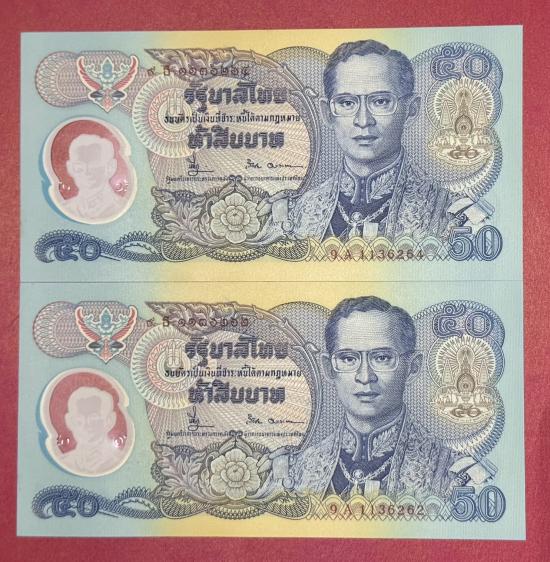 ธนบัตรที่ระลึก รัชกาลที่ 9 ฉลองสิริราชสมบัติครบ 50 ปี ราคา 50 บาท จำนวน 4 ใบ สภาพสวยตามรูป |