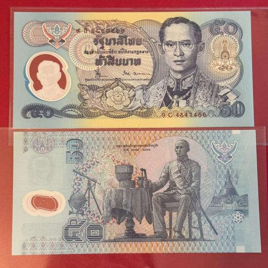 แบงค์ 50 บาท โพลิเมอร์กาญจนาภิเษกและแบงค์ 50 บาท แบบ 15 จำนวน 2 ใบ สวยไม่ได้ใช้งาน |