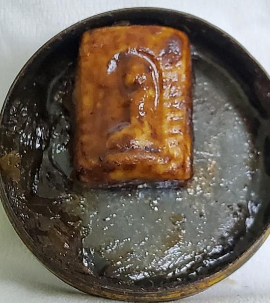 สีผึ้งบรรจุในตลับยาหม่องเก่า ภายในมีสีผึ้งและนางกวัก ไม่ทราบที่