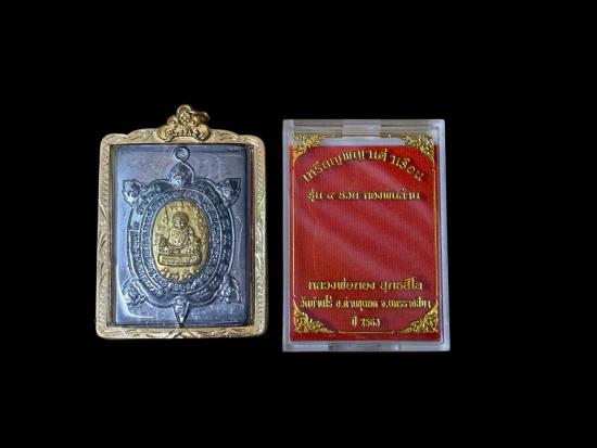 เหรียญ พญาเต่าเรือน รุ่น ๙ รวย ทองพันล้าน หลวงพ่อทอง สุทธสีโล วัดบ้านไร่ อ.ด่านขุนทด จ.นครราชสีมา ปี 2563 ( พร้อมเลี่ยมกรอบไมค่อนสีทอง )