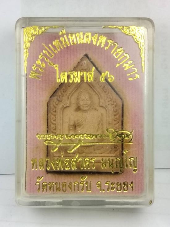 พระผงรูปเหมือน หลวงพ่อสาคร พิมพ์ห้าเหลี่ยม ซุ้มเรือนแก้ว เนื้อชมพู ผสมผงพรายกุมาร ฝังตระกรุตทองแดง จีวร เกศา ผงชนวน หมายเลข 6111 สร้าง 7000 องค์ ปี 2556 ปลุกเสก 3 วาระ หลวงพ่อสาคร วัดหนองกรับ มีกล่อง |