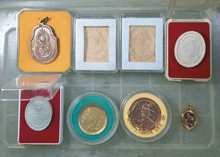พระเจ้าตากสินมหาราช 4 องค์ + ร.5 3 องค์ + พระผงร.6 +เหรียญร.9 + เช็มกลัดพระเทพ |