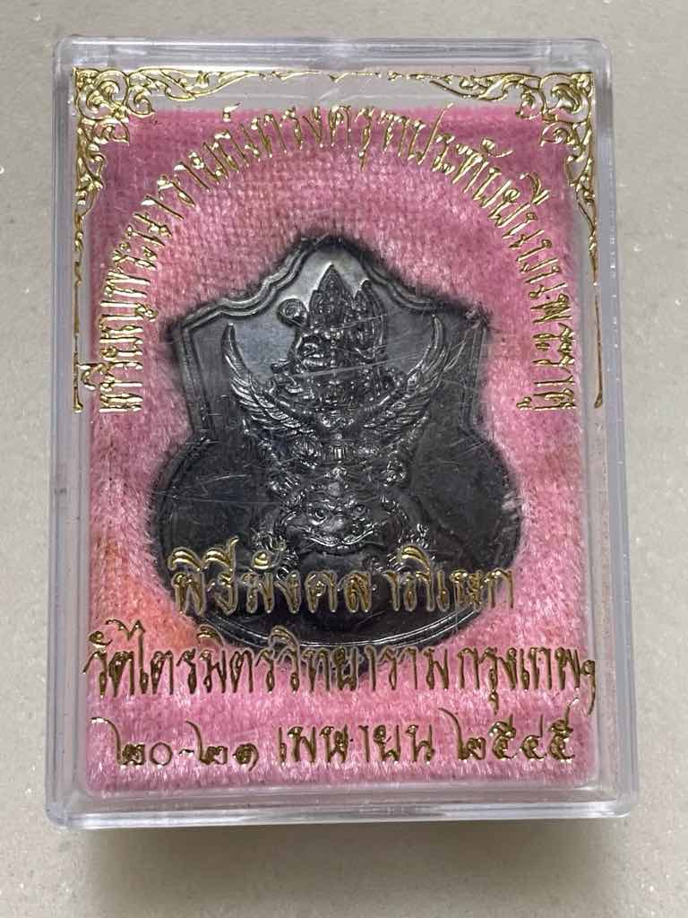 900.- เหรียญนารายณ์ทรงครุฑประทับราหู ท่านเจ้าคุณธงชัย วัดไตรมิตรฯ รุ่นแรก เนื้อทองแดงรมดำ (ตอกโค๊ด) นิยม ปี 2545 สภาพสวยเดิมๆ มีกล่อง |