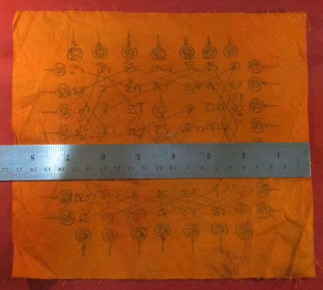 ผ้ายันต์ ไม่ทราบที่ จารยันต์ด้วยมือ เนื้อผ้าจีวร ครับ