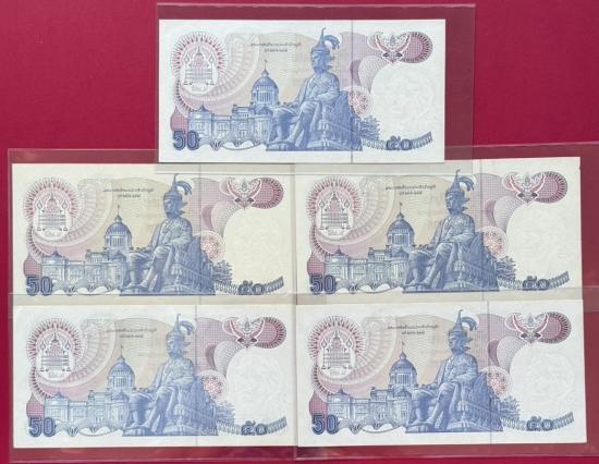 ธนบัตร 50 บาท รัชกาลที่ 9 แบบ 13 ลายน้ำสมเด็จย่า จำนวน 5 ใบ สภาพสวยตามรูป |