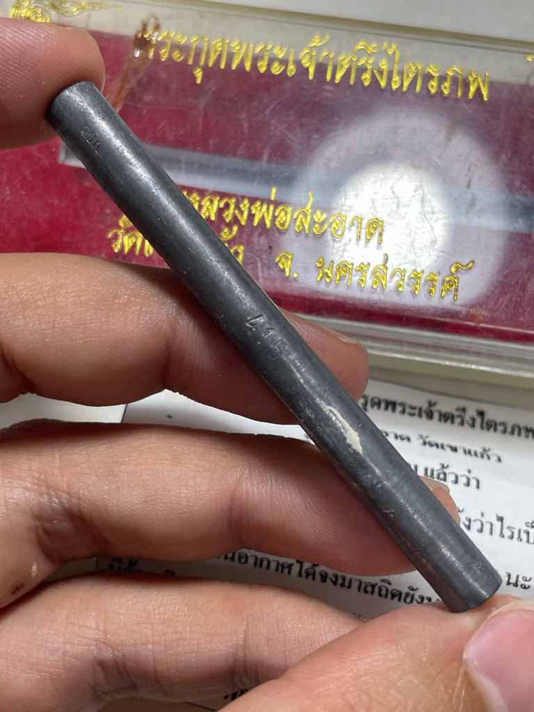 200.- ems ตะกรุด พระเจ้าตรึงไตรภพ เนื้อตะกั่ว ยาว 3 นิ้ว หลวงพ่อสะอาด วัดเขาแก้ว นครสวรรค์ ศิษย์เอกหลวงพ่อกัน สายหลวงพ่อเดิม วัดหนองโพ ตะกรุดนี้ เป็นยันต์เดียวกับที่หลวงพ่อเดิม ใช้ลงมีดหมอ มีโค๊ด/เลข |
