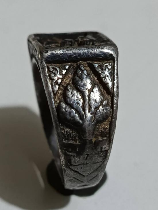 -บ่าแหวนด้านซ้ายแกะสลักดอกบัว และ สธว (สายธารวรจักร)