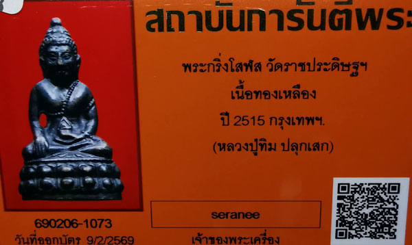 พระกริ่งโสฬส มปร. วัดราชประดิษฐ์ ปี2515 เนื้อทองเหลือง กริ่งดัง หลวงปู่ทิม วัดละหารไร่ ปลุกเสก + บัตรG-pra สภาพเดิมค่ะ |