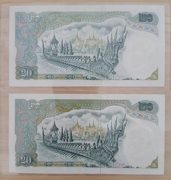 ธนบัตร 20 บาท หลังเรืออนันตนาคราช แบบ 11 จำนวน 2 ใบ สภาพสวย |