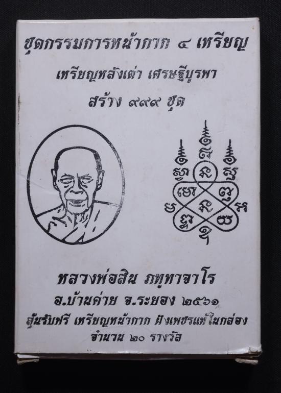 ชุดกรรมการหน้ากาก 4 เหรียญ หลวงพ่อสินเหรียญหลังเต่าเศรษฐีบูรพา ปี 2561 แดงเคาะแรก |