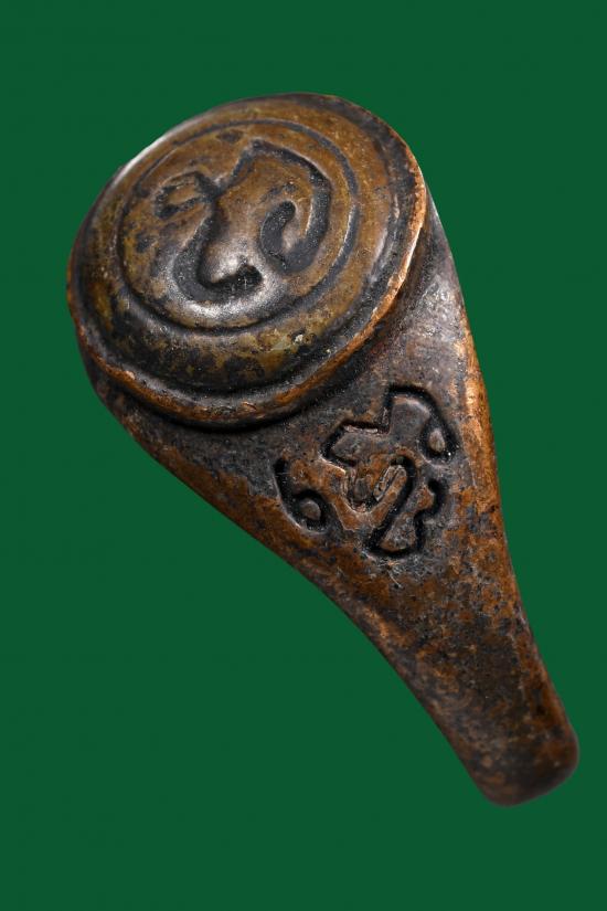 แหวนนะปัดตลอดหลวงพ่อทองศุข วัดโตนดหลวง จ.เพชรบุรี เนื้อทองแดง สร้างปี 2490-2500 |