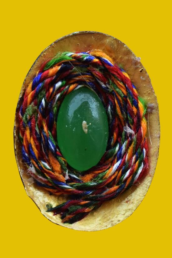 *** เคาะเดียวแดง ทุกรายการ *** ล็อคเก็ตหลวงพ่อหยอด วัดแก้วเจริญ สมุทรสงคราม ปี 2540 หลังไหมเบญจรงค์ + หยก สภาพตามรูป (No.4)