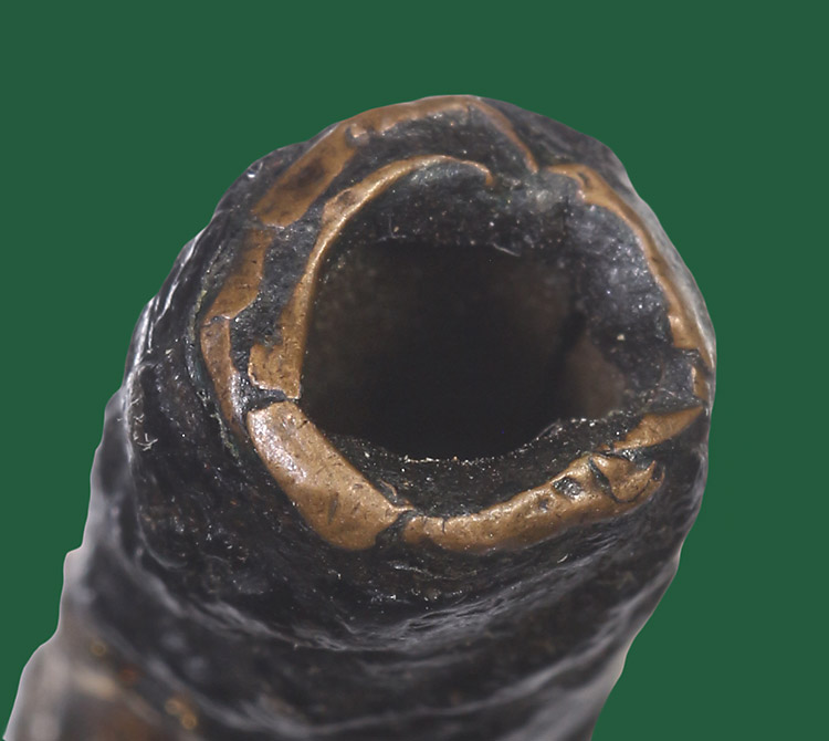 วัดใจ**เครื่องราง ตะกรุดสาริกา เนื้อทองแดงถักเชือกลงรักเก่า ยาว 1.นิ้ว ไม่ทราบที่.....ตามสภาพครับ |
