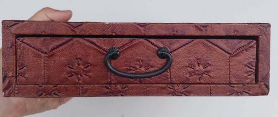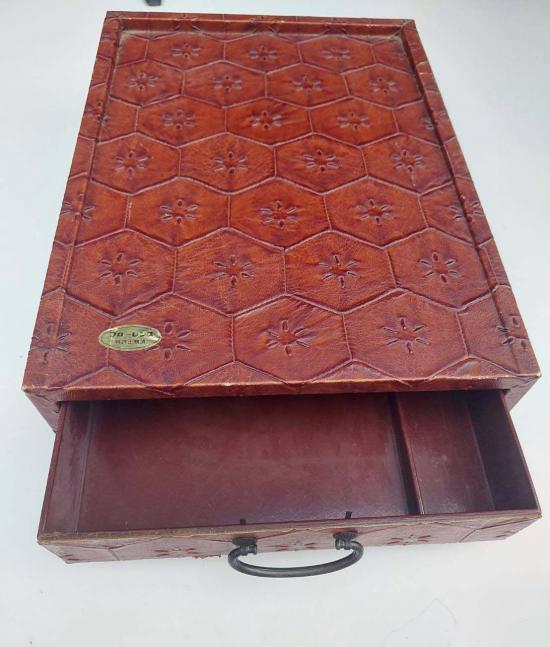 ***วัดใจ***กล่องไม้ลิ้นชัก หุ้มหนังแท้ตอกลายกระดองเต่าทรงกลม จาก Kanogiyaman-Vintage Japan Genuine Leather by Kanogiyaman สวยๆ |