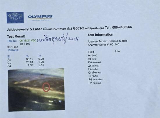 กรอบทองคำแท้ น้ำหนักประมาณ 2.7 กรัม เปอร์เซ็น 68.11 % |