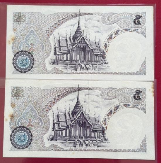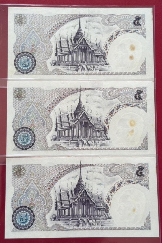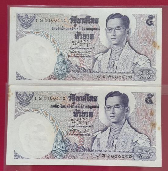 ธนบัตร รัชกาลที่ 9 แบบ 11 ชนิด 5 บาท หมวด S เลขเรียง จำนวน 5 ใบ สภาพสวยตามรูป |