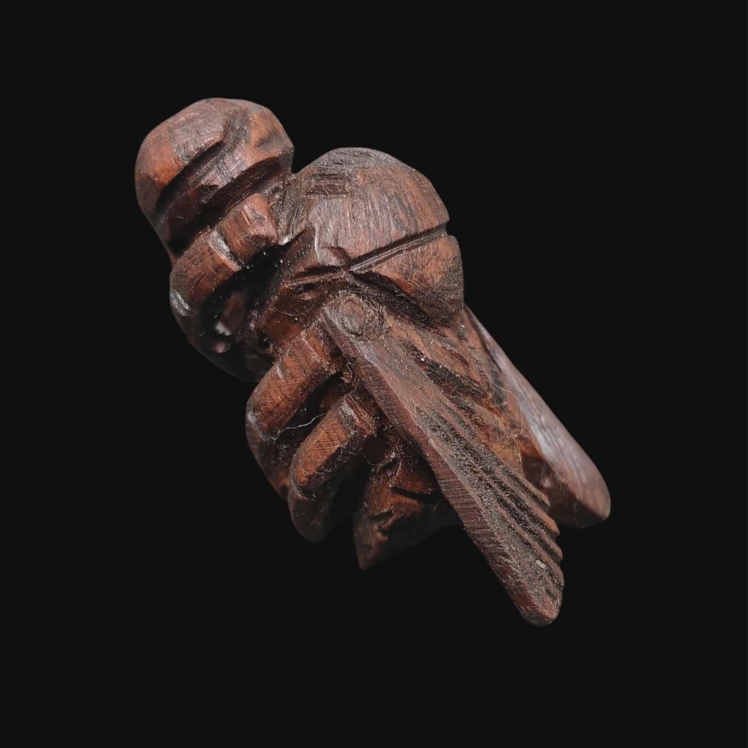 แมลงภู่ไม้ดุมล้อเกวียนเก่า อุดกริ่ง แมลงภู่คำ เป็นเครื่องรางสายพม่า-ไทใหญ่ เด่นด้านเมตตามหานิยม โชคลาภ และป้องกันภัย ขนาด 4.5 ซม |
