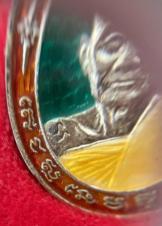 เหรียญไตรมาสหลวงปู่ม่น วัดเนินตามาก จ.ชลบุรี ปี๒๕๓๗ เนื้อเงินลงยา พร้อมกล่อง |