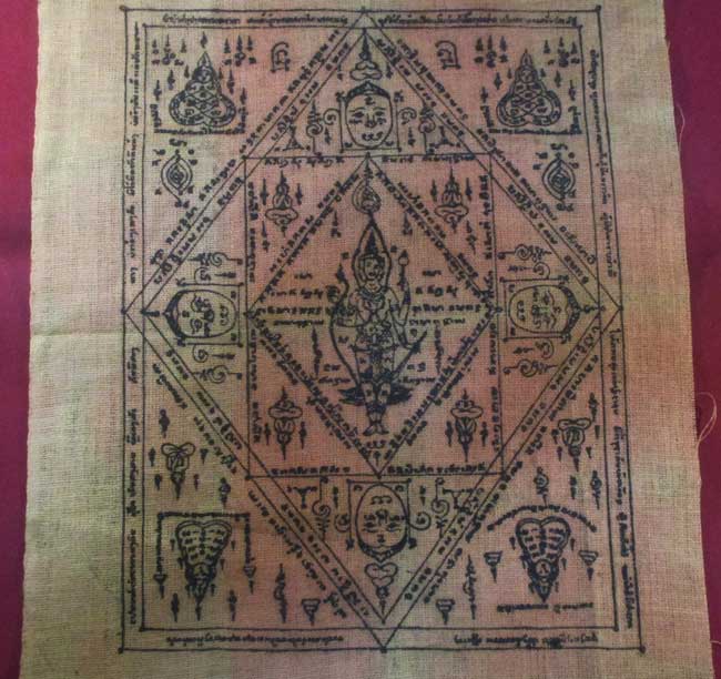 ผ้ายันต์ ไม่ทราบที่ ลวดลายสวย เนื้อผ้าดูเก่า ครับ (พระบ้าน ครับ) |