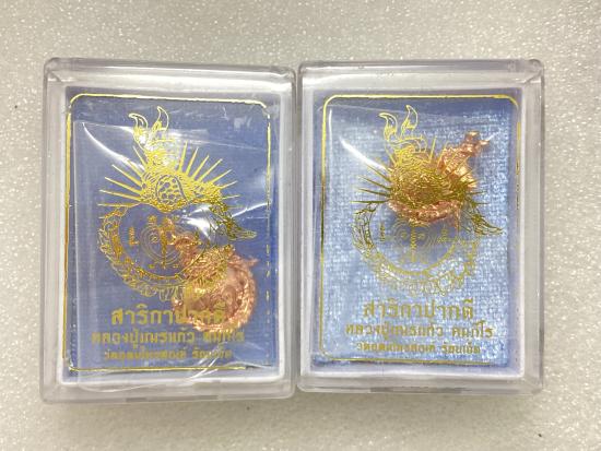 สาริกาปากดี หลวงปู่เณรแก้ว วัดอุดมไพรสณฑ์ จังหวัดร้อยเอ็ด เนื้อทองแดง กล่องเดิม ( 2 ชิ้น ) |