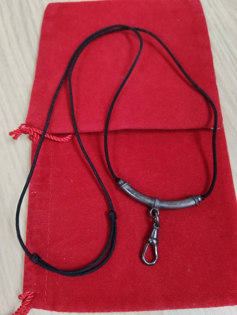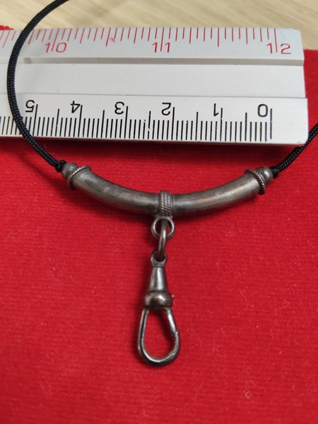 ก้ามปูสปริงเงิน + ตัวโค้งเงิน มือสอง พร้อม สร้อยเชือกสามารถปรับสั้นยาวได้ สภาพดี (ขนาดตามรูป) |