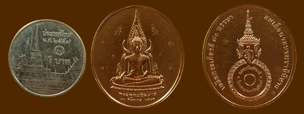 ลักษณะ: ด้านหน้าเป็นรูปจำลองพระพุทธชินราช ด้านหลังเป็นพระนามาภิไธยย่อ ส.ก.