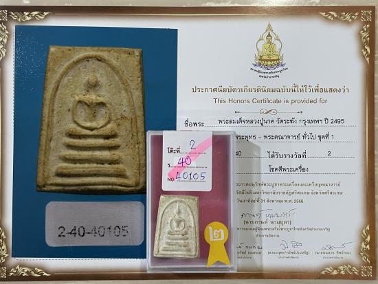 สร้างปี 2495 สภาพสวย สมบูรณ์ ไม่หักไม่ซ่อม รับประกันพระแท้ ดูง่าย ใบประกาศรางวัลที่2งานสมาคม