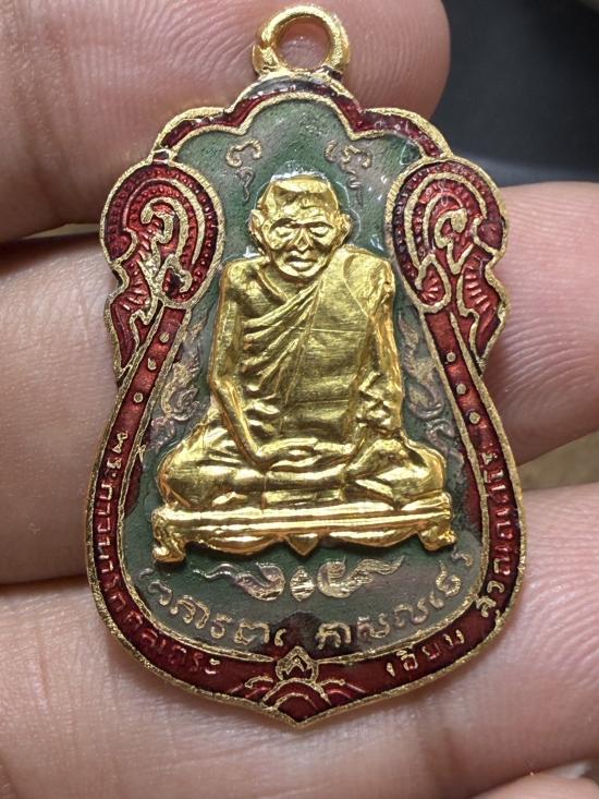 เหรียญหลวงปู่เอี่ยม วัดหนัง ออกวัดโคนอน พิมพ์หลังยันต์สี่ ปี 2514 เนื้อกะไหล่ทองลงยาหน้าทองคำ