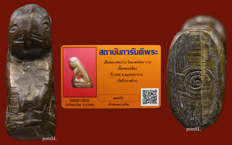 เสือหล่อโบราณ รุ่นแรก หลวงพ่อปาน วัดบางเหี้ย ออกวัดปีกกา สมุทรปราการ ปี 2498 เนื้อทองผสม ตอกโค๊ด ๑ สวย สมบูรณ์ หายากครับ