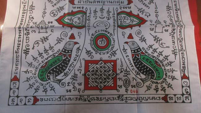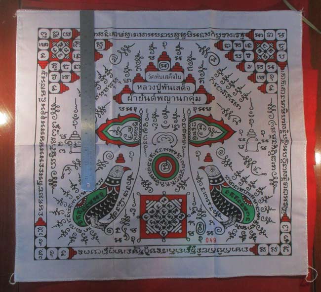ผ้ายันต์ พญานกคุ่ม หลวงปู่พันเสด็จ วัดพันเสด็จใน ลวดลายสวย ครับ