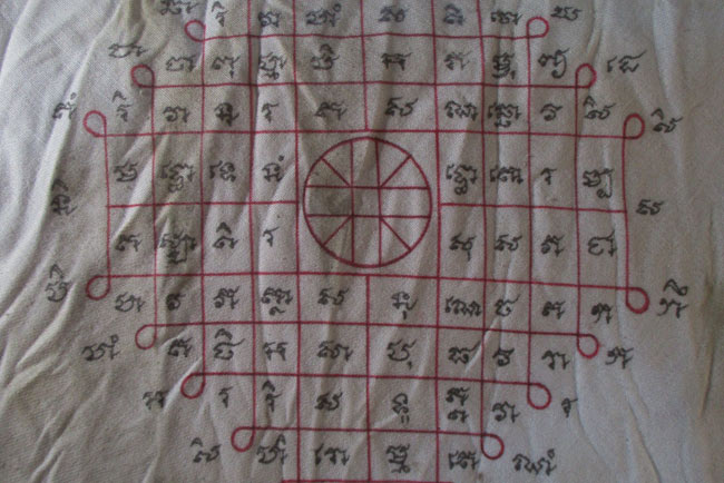 ผ้ายันต์ ไม่ทราบที่ จารยันต์ด้วยมือ ยันต์สวย ครับ (พระบ้าน ครับ) |
