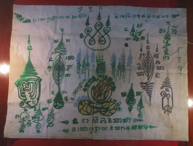 ผ้ายันต์ ไม่ทราบที่ จารยันต์ด้วยมือ ยันต์สวย ครับ (พระบ้าน ครับ) |